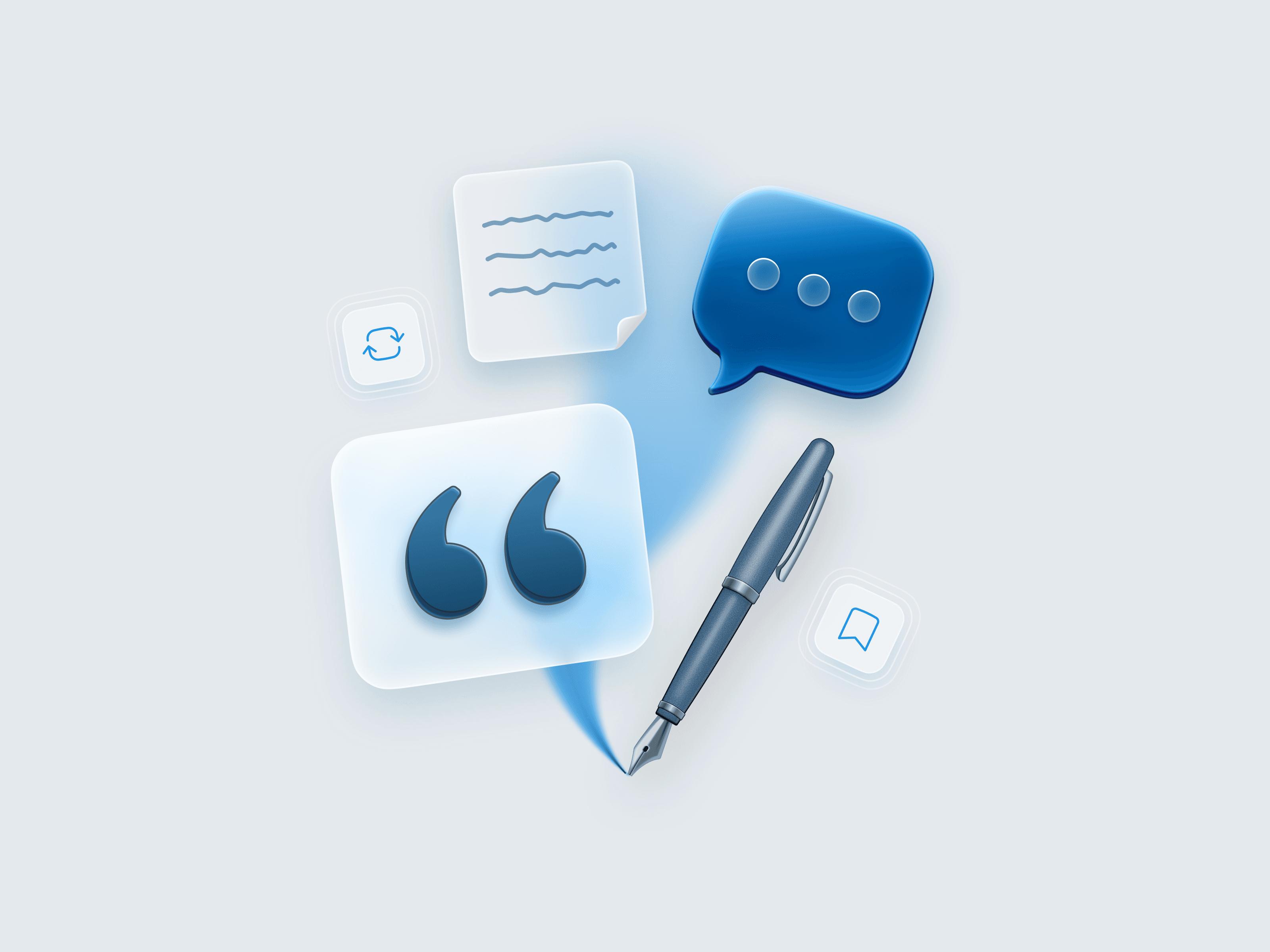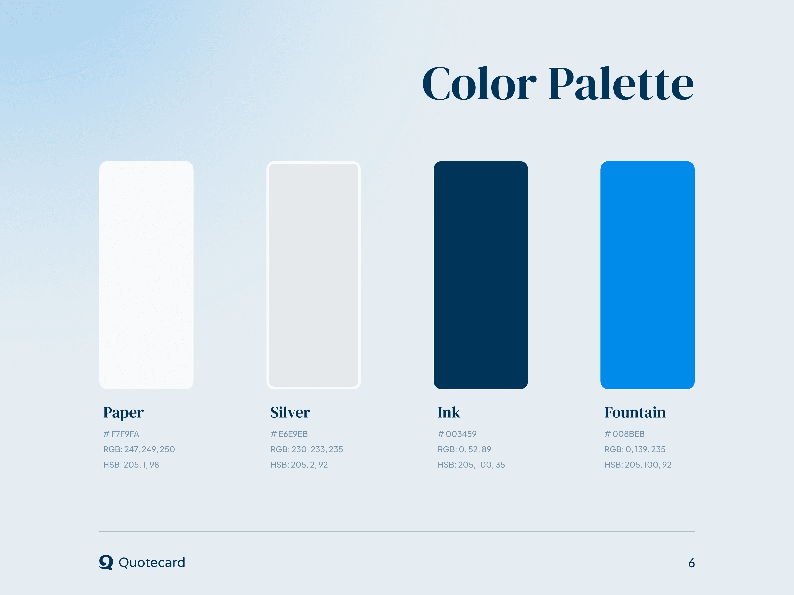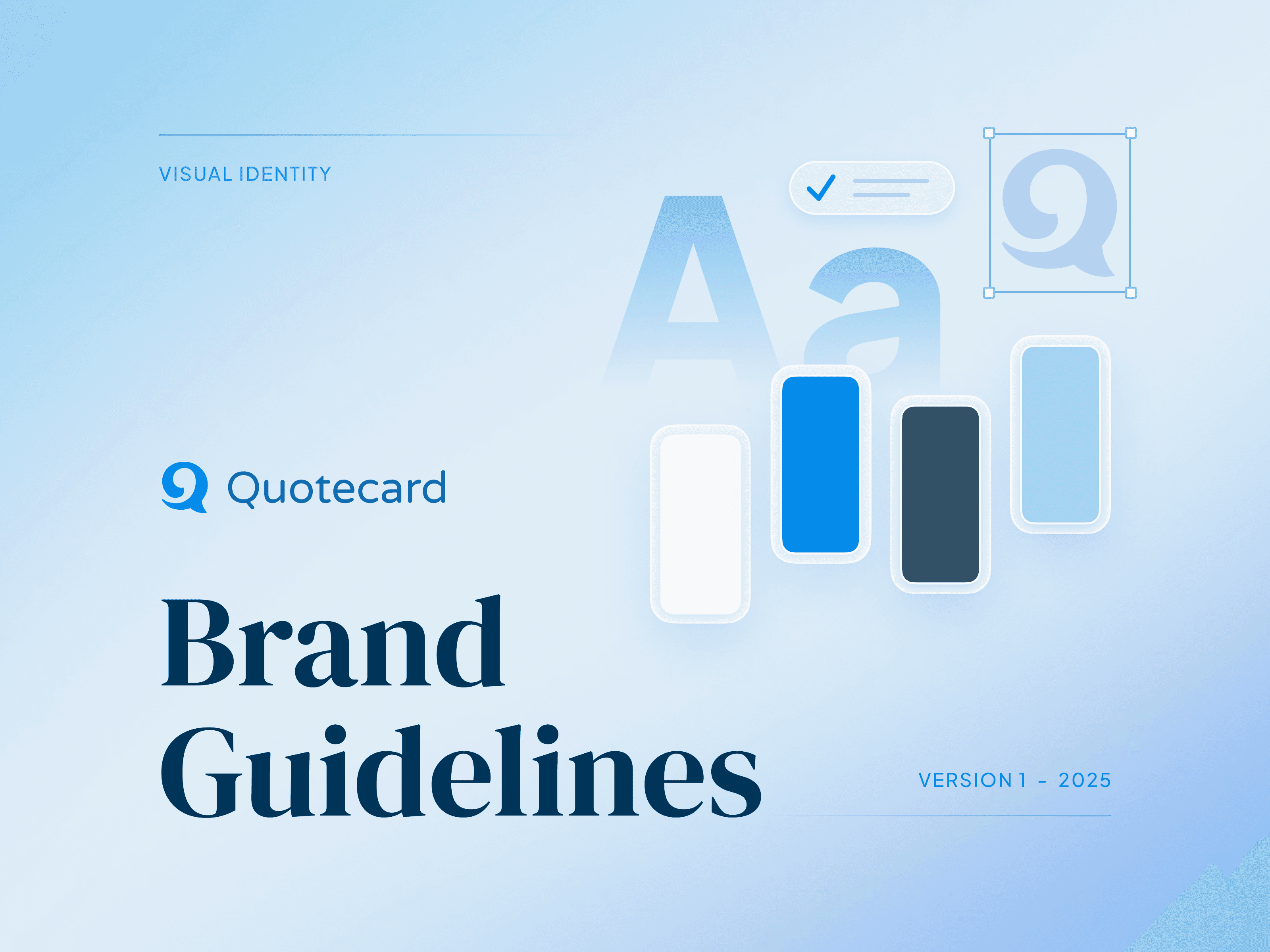 The logo combines a stylized “Q” with subtle references to quotation marks and speech bubbles, signaling conversation and ideas. The color system grew from a cool, versatile palette—dark blues for primary text, vibrant blues for actions, and soft, cool neutrals for cards and backgrounds—chosen to complement a wide variety of content imagery/color without clashing.